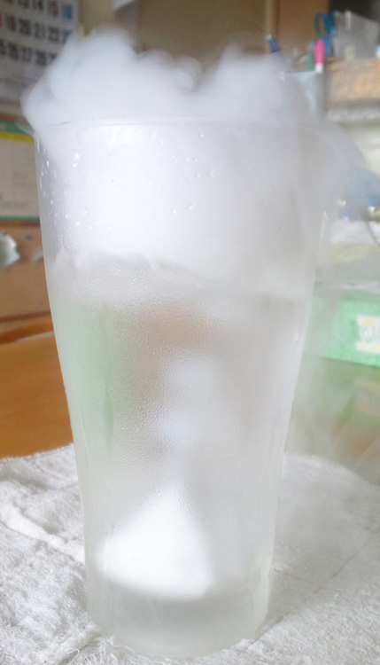 我が家のドライアイスの定番。むしろ夏以外でもアイスを買ってドライアイス付いてきたらする。勝手に溶けるのを待ってほっといても誰かが入れる。