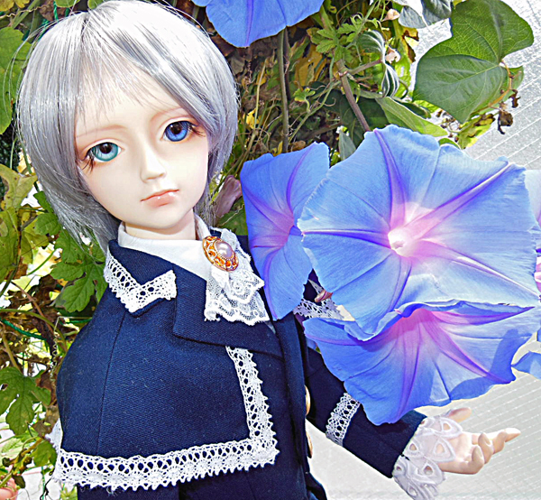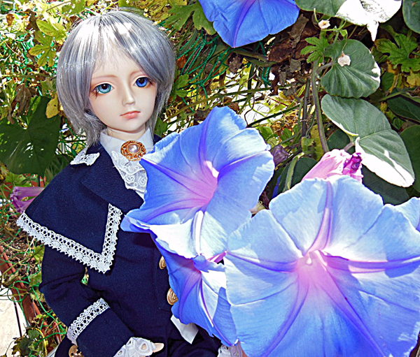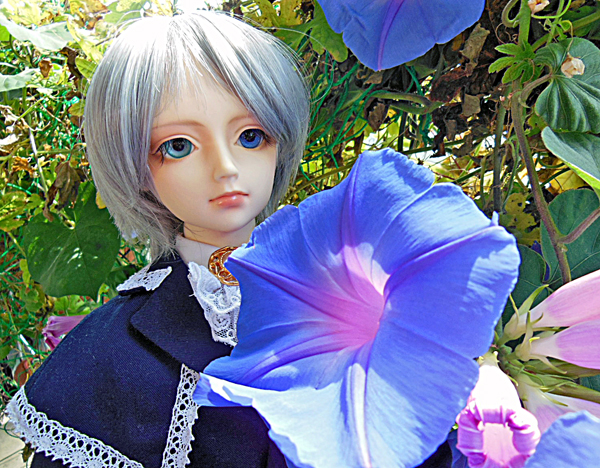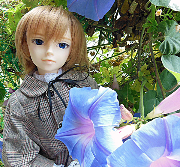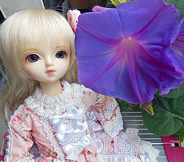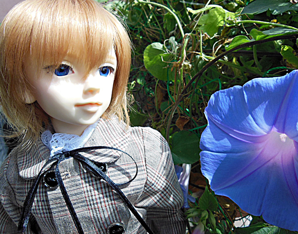 今日も朝顔が咲いていたのでロウェルを連れ出して撮りました。