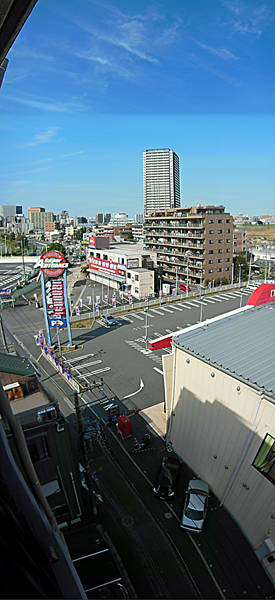 あ、下の方の道路が曲がっているのは手振れが起きた為です。