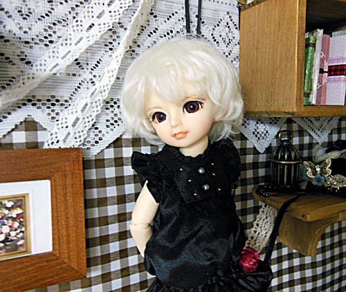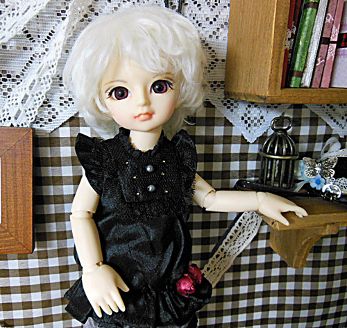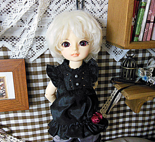 ロウェルの黒コートに付いてきた金色ステッチ入りのリボンをさせてみました。