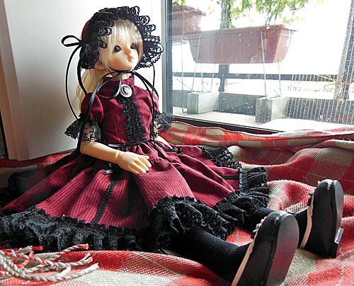 紅と黒のドレスですし、靴下も黒で靴も黒と暑そうな色ですが半袖なので夏っぽい。