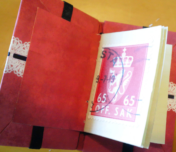 左がデンマークの切手を使用した豆本。右はノルウェーの切手を使用した豆本。
