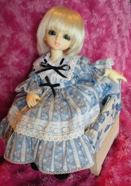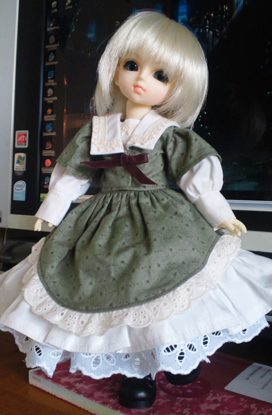 前にも着せた緑のセーラードレスなのですが、やっぱり落ち着いた緑色はしっくりくるので着せてしまう。