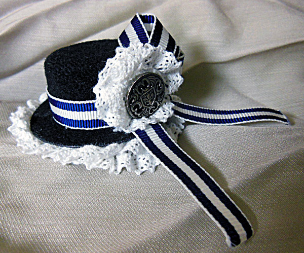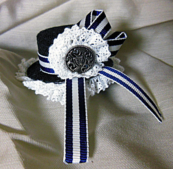 更に黒いハットにワイヤーで固定して、同じ柄のリボンをボンドで固定しました。