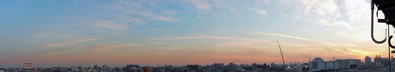 夕方の空。夕日に向かって雲の筋が伸びていて綺麗でしたので久しぶりにパノラマ。