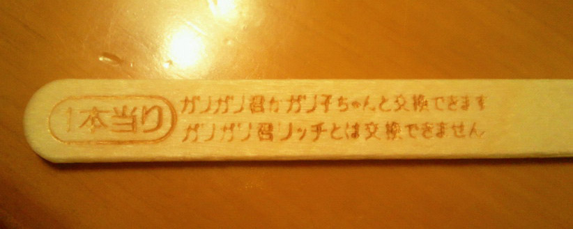 二回目くらいのガリガリ君の当たり棒が発見されました。